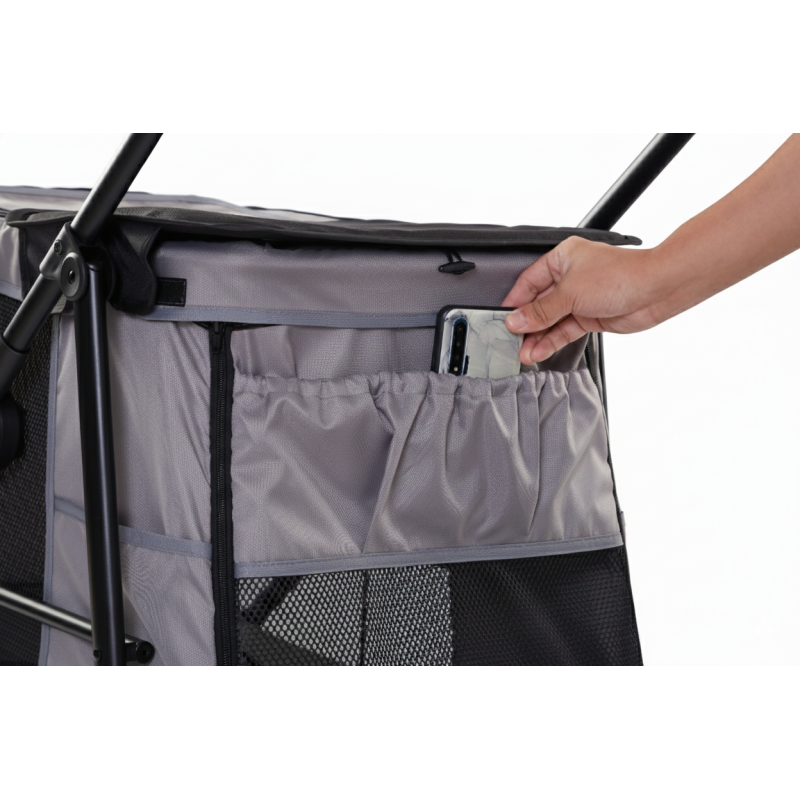 Dayanıklı yapısı, geniş iç hacmi ve kolay sürüş sağlayan tekerlekleri ile orta ve büyük boy evcil hayvanlar için ideal bir taşıma arabasıdır. Günlük yürüyüşler, veteriner ziyaretleri ve dış mekan kullanımı için konforlu ve güvenilir bir çözüm sunar.